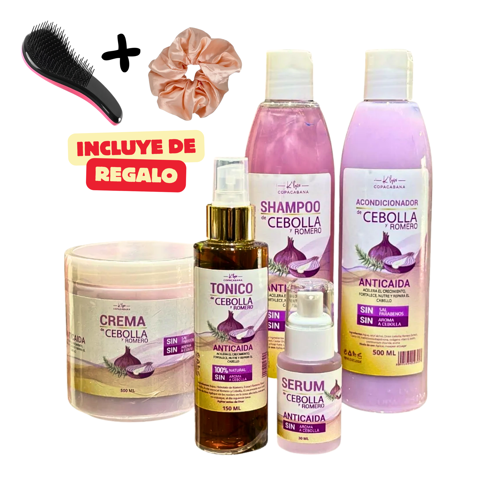 🧅✨ Kit Capilar Cebolla y Romero Natural Concentrado | Crecimiento Acelerado y Anticaída | Shampoo + Acondicionador + Crema + Tónico + Sérum K-lyss Copacabana